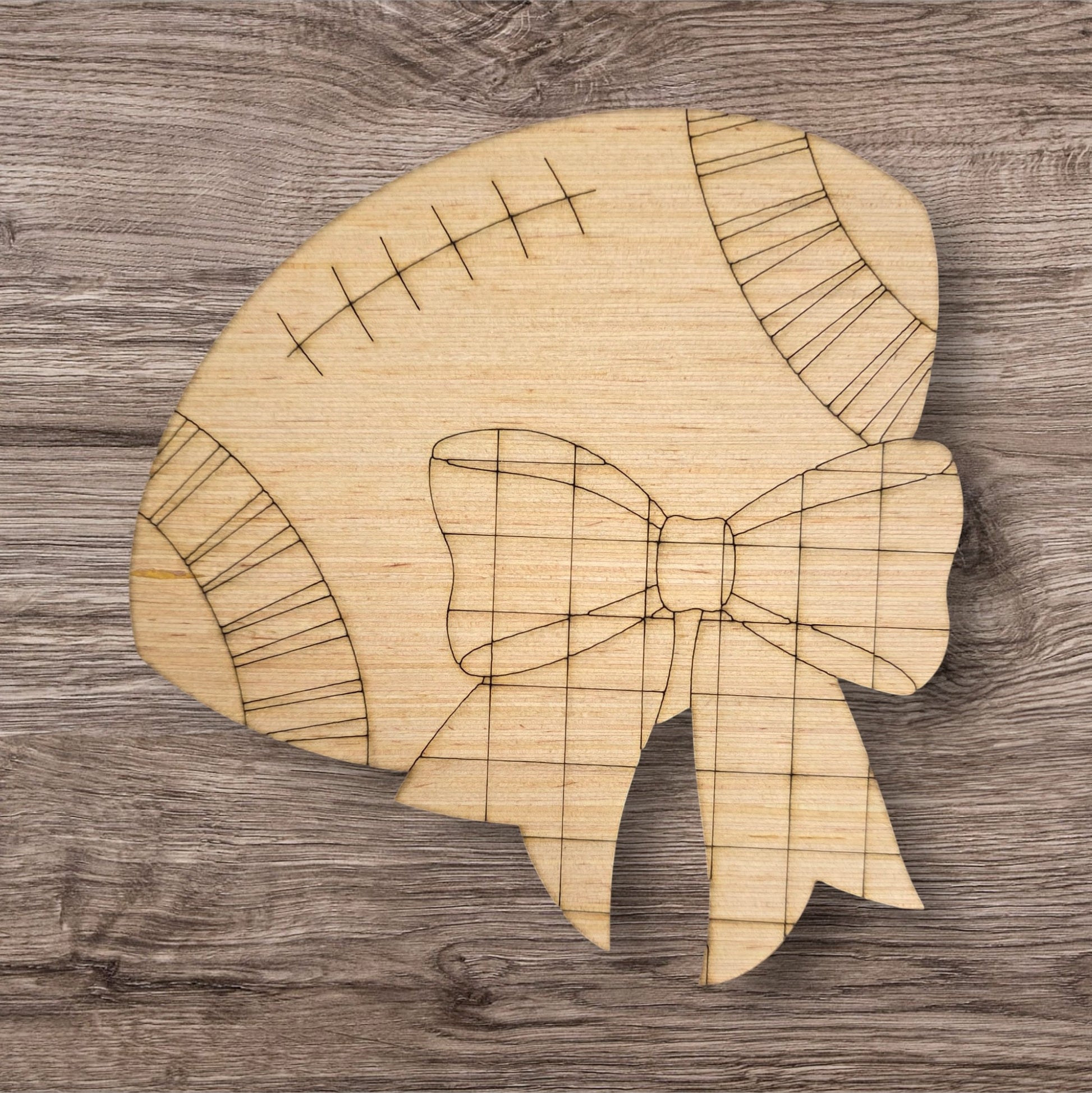 Get ready for game day with our football door hanger wood blank from Grayson & Me! This laser-cut wood kit is perfect for crafting your own team-spirited decor. Featuring a classic football shape and a large checkered bow, this blank is ready for you to paint and personalize.